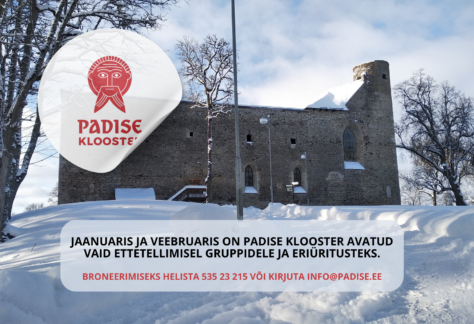 Padise klooster ja külastuskeskus on jaanuaris ja veebruaris avatud vaid ettetellitud gruppidele ja eriüritusteks